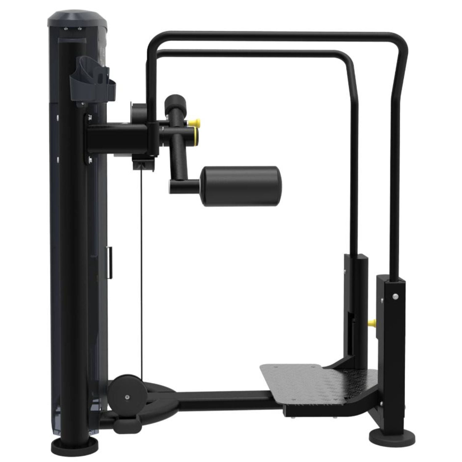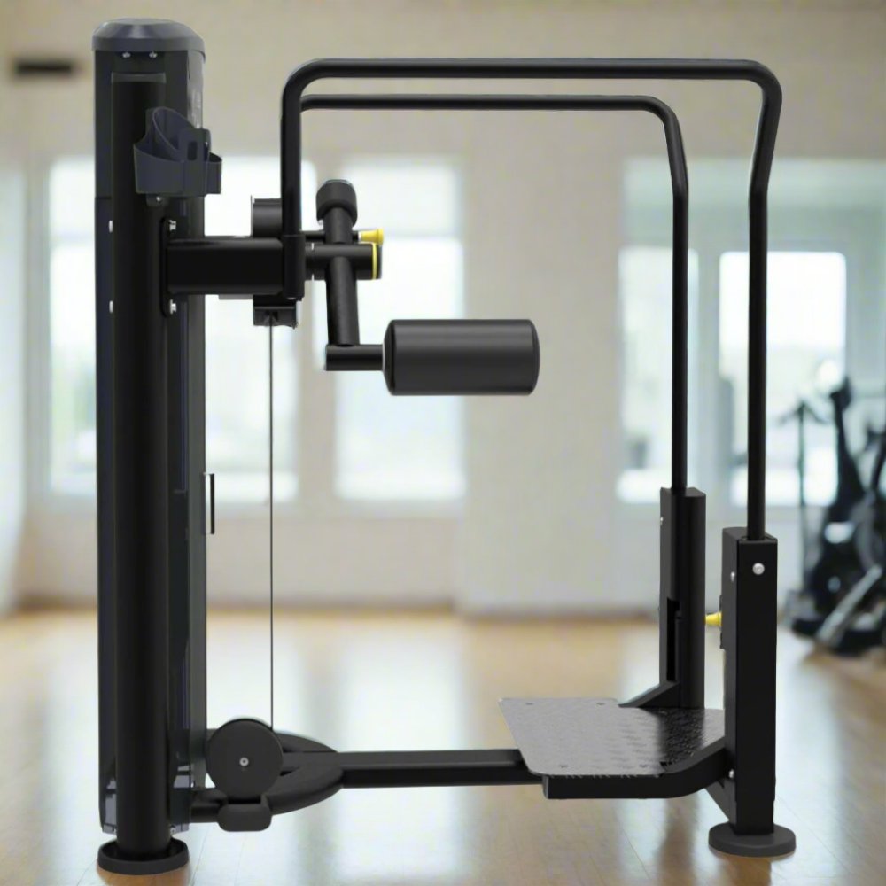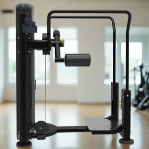 The specially designed Impulse IT9509 Total Hip is pin selectorized equipment for working out gluteus medius and maximus. The exerciser could effectively work out the muscles of hip by swinging the thigh after choosing the appropriate weight. Adjustable foam roller provides a personalized fit for isolateral training. It can achieve various workouts for hip. Handle bars on sides provide user stabilization and support.