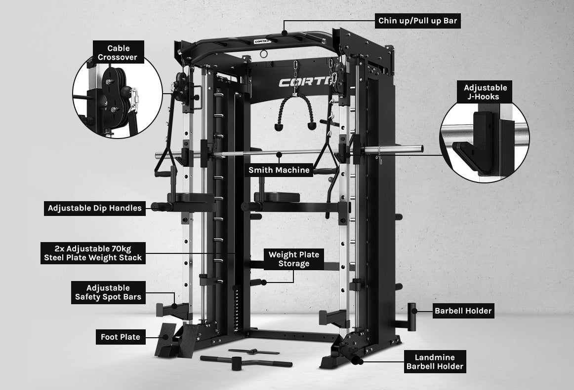 Cortex SM-26 6-in-1 Power Rack with Dual Stack Smith & Cable Machine