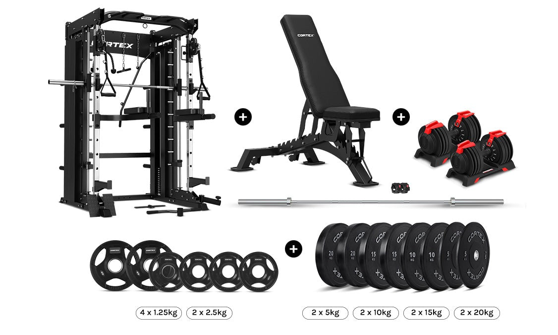 Transform your home gym with the all-inclusive CORTEX SM-26 6-In-1 Power Rack bundle for a versatile strength-training experience.