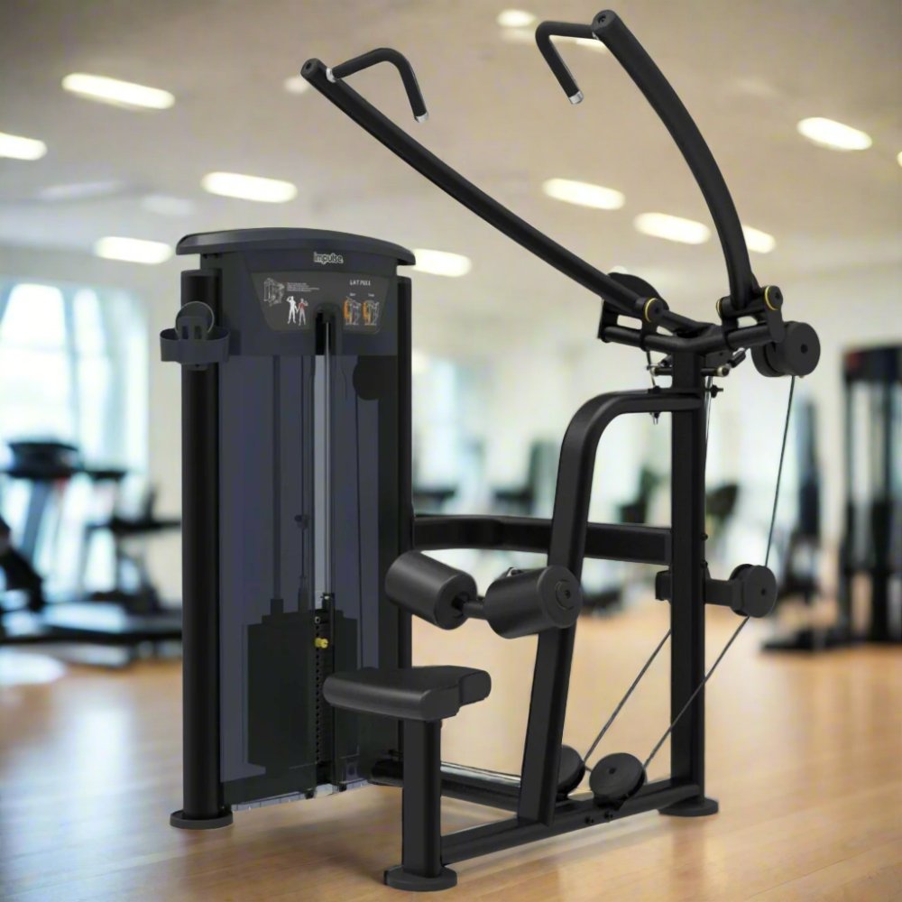 Pin-loaded cable lat pulldown machines are also very popular and offer a great range of motion and flexibility. These are very popular due to their ease of use and relatively small footprint compared to plate-loaded machines.