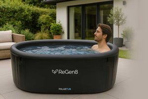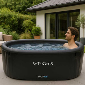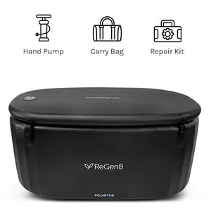 The ReGen8 PolarTub comes with everything you need to get started and maintain your cold plunge setup. This includes a hand pump for easy inflation, a convenient carry bag and a repair kit with repair patches, repair glue, an air valve wrench and water port plugs.