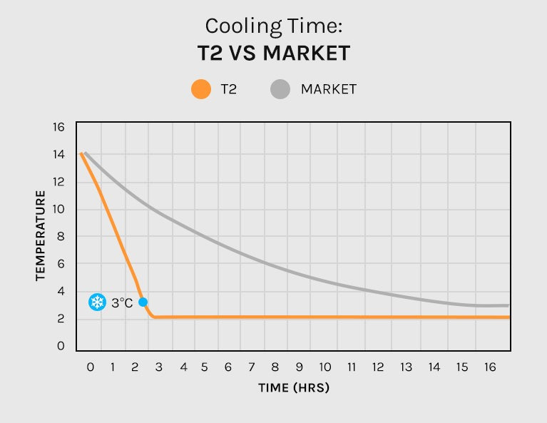 *Figures 3°C (T1) and 2°C (T2) achievable based on ambient temperature and climate, this may be affected by direct sunlight and other factors.