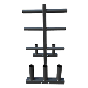 The rack accommodates Olympic-sized 51mm weight plates and 50mm Olympic bars. There is room for multiple plates on each of six weight plate spokes. Even better, six additional outside spokes give you a convenient place to store standard-sized gym bars.