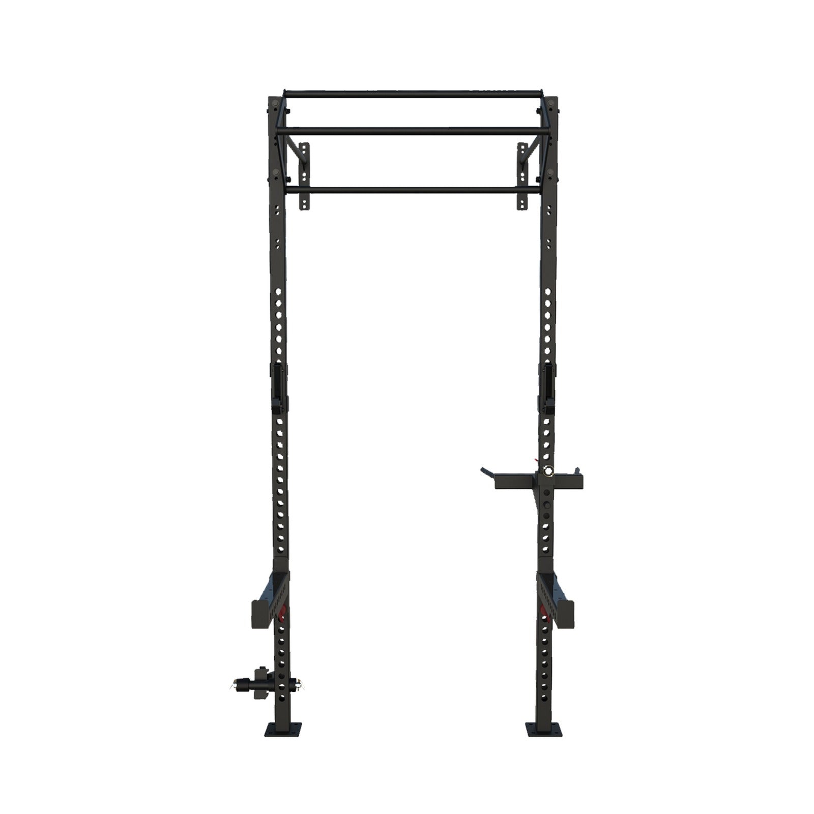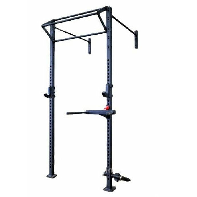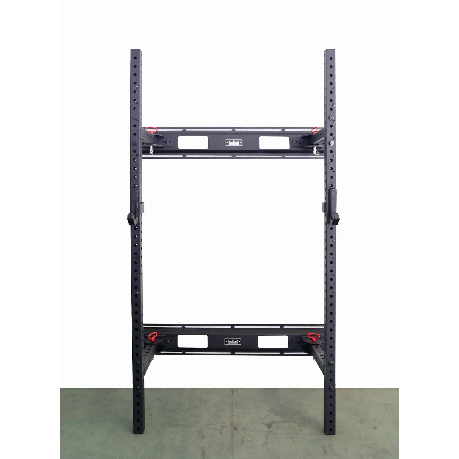 The Morgan Foldable Wall-Mounted Squat Rack is the perfect space-saving rig that can fold back onto the wall when not in use. It is perfect for smaller spaces like garages!
