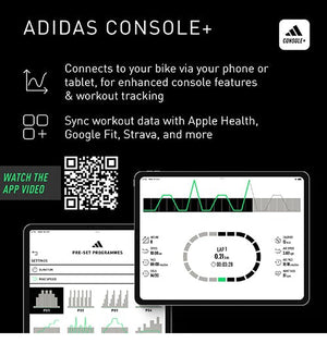 The Adidas Console App connects seamlessly with the bike, allowing you to track your progress and sync your data for a comprehensive overview of your workouts. Set goals, monitor performance and keep motivated by analysing your fitness journey through the app's intuitive interface.