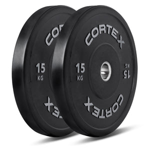 CORTEX 15kg Black Series V2 50mm Rubber Olympic Bumper Plate (Pair)