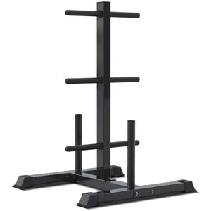 The included weight tree keeps your plates and bars neatly organized and accessible, maximizing your workout space and safety.