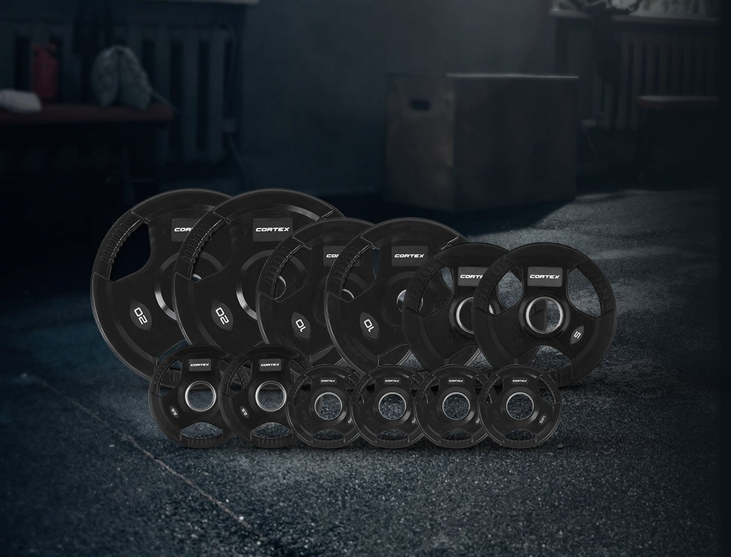 The CORTEX Olympic Rubber Tri-Grip V2 weight plates are built to commercial standards with heavy duty rubber to ensure maximum durability and protection for your equipment, walls or floors.