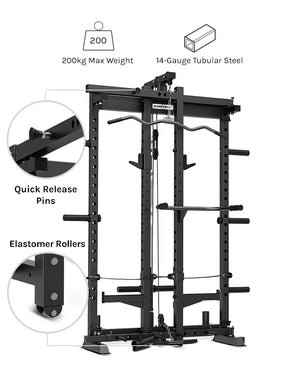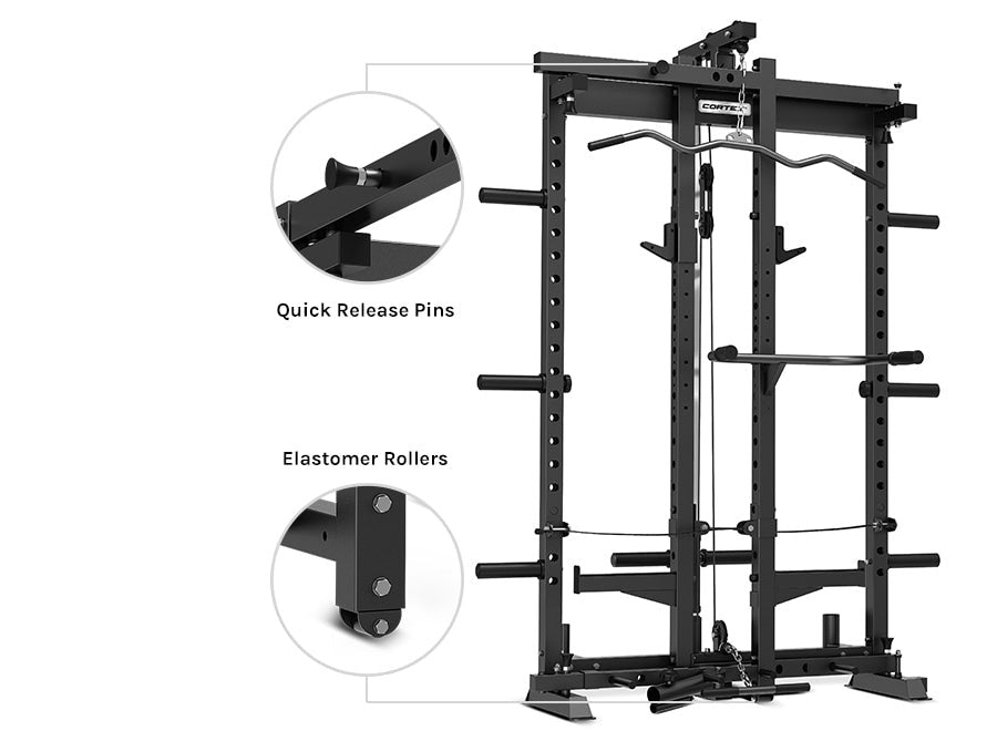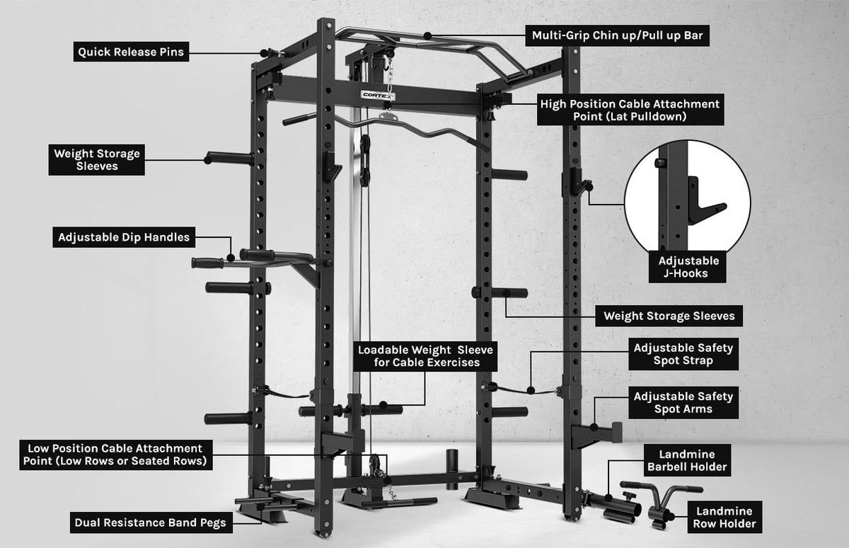Tailor your workout to your needs and take on an extensive array of exercises, thanks to adjustable J-Hooks, dip handles, multi-grip chin-up handles and attachment points for both high and low cable pulleys.