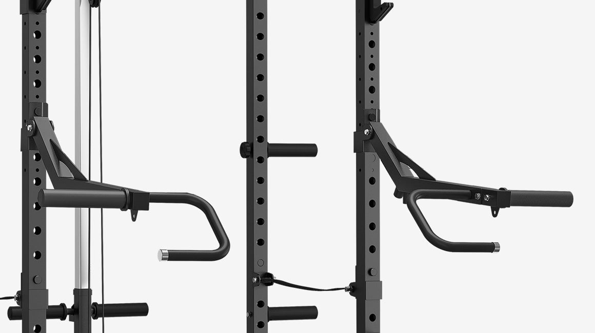 Tailor your workout to your needs and take on an extensive array of exercises, thanks to adjustable J-Hooks, dip handles, multi-grip chin-up handles and attachment points for both high and low cable pulleys.