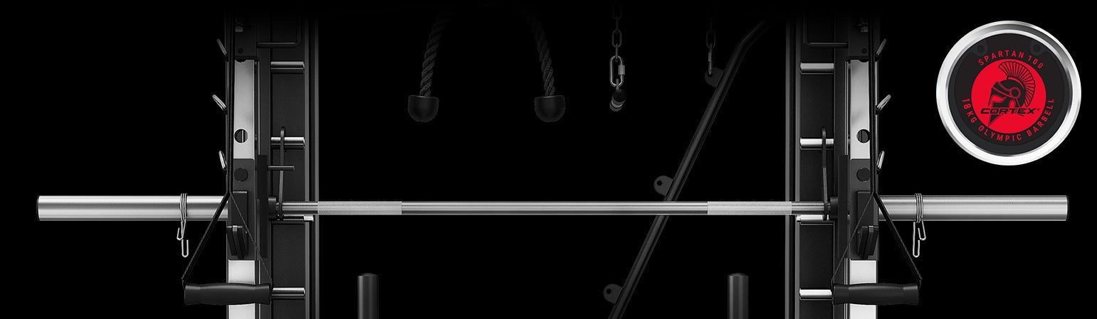 Included is an 18kg solid steel smith bar made from the same materials as our robust Spartan100 Barbell. With Olympic 7ft sizing and a maximum weight rating of 220kg, this barbell ensures stability and confidence under heavy loads. Its precise knurl gripping offers a secure hold, while needle bearings provide smooth rotation, making it perfect for simulating an Olympic barbell experience.