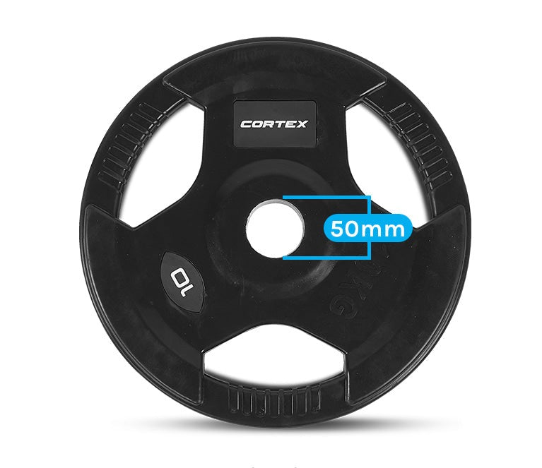 80kg CORTEX Tri-Grip V2 Olympic Rubber Weight Set (4 x 1.25kg, 2 x 2.5kg, 2 x 5kg, 2 x 10kg, 2 x 20kg plates)