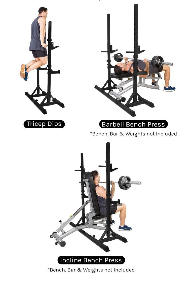 This versatile, heavy-duty home gym package lets you master squats, bench presses, dips, and more safely and efficiently.