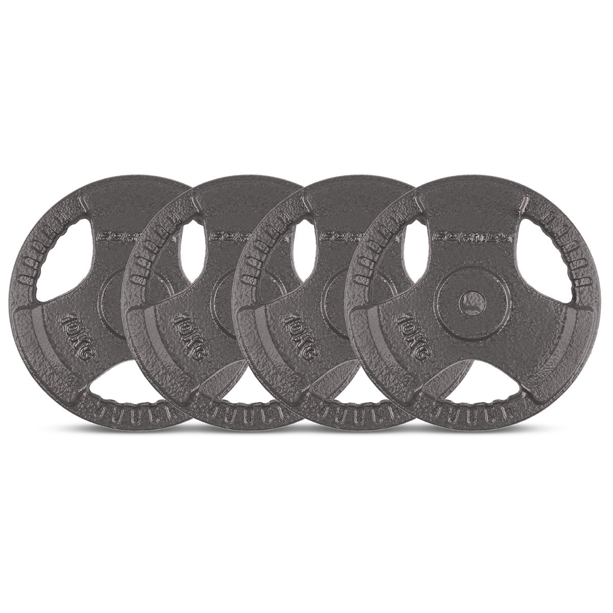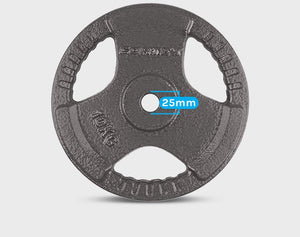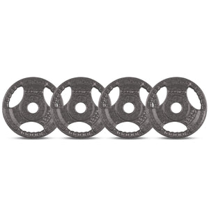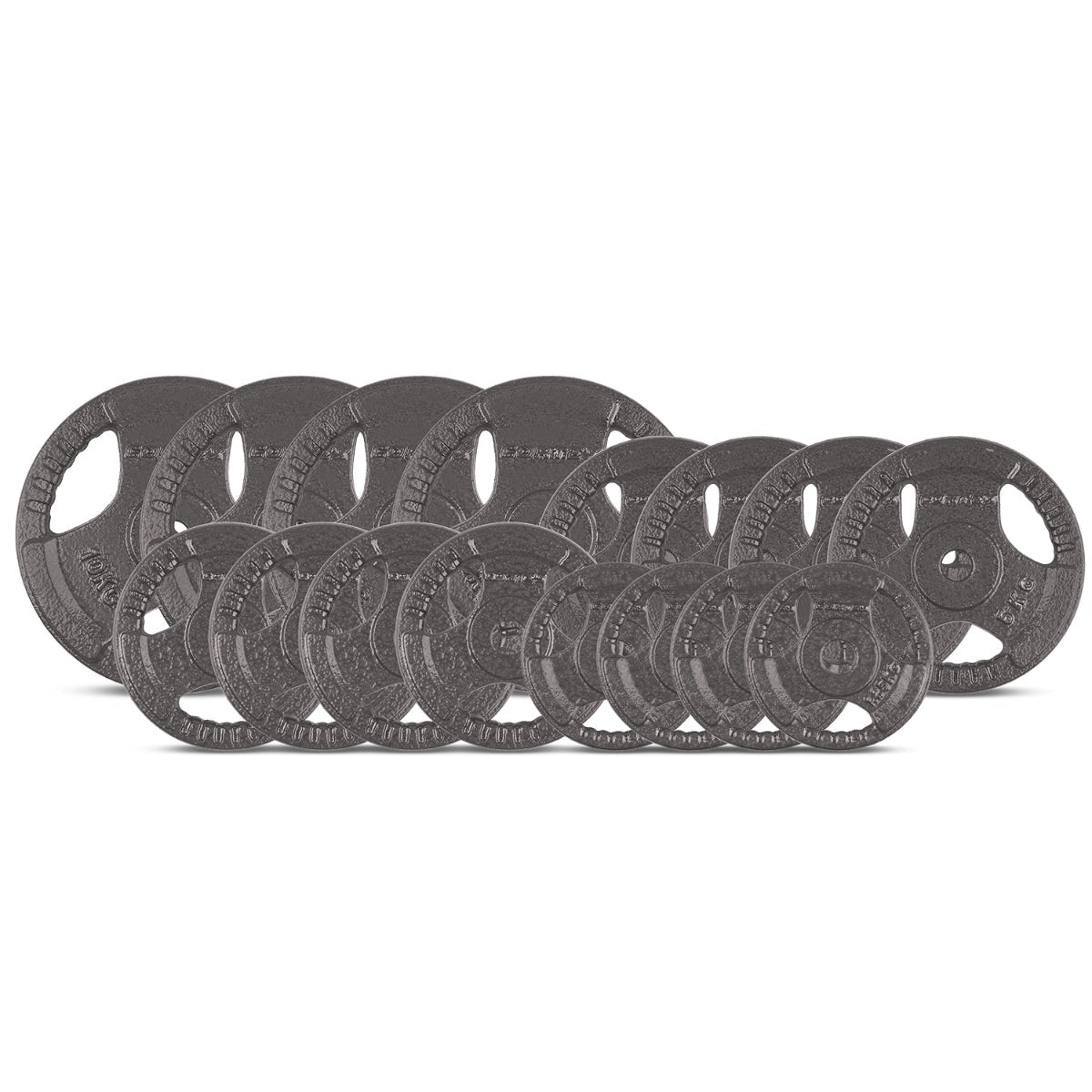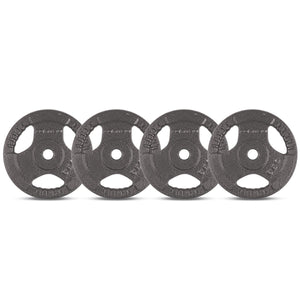 Cast iron tri-grip plates are rust and chip resistant, offering unmatched quality and comfort during plate-loaded training.