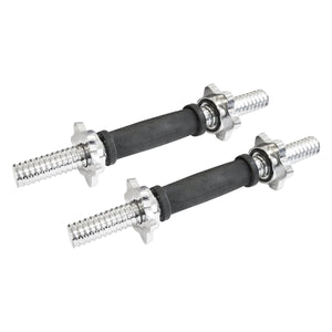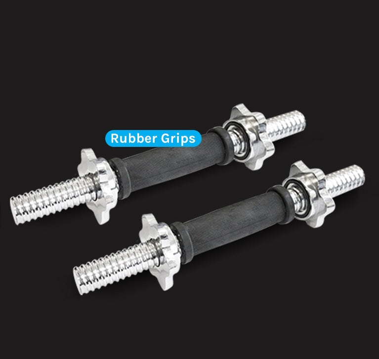 These dumbbell handles are ideal for strength training, features a rubber grip handle, spiral lock collars (Star shaped) and a strong chrome finish for durability.
