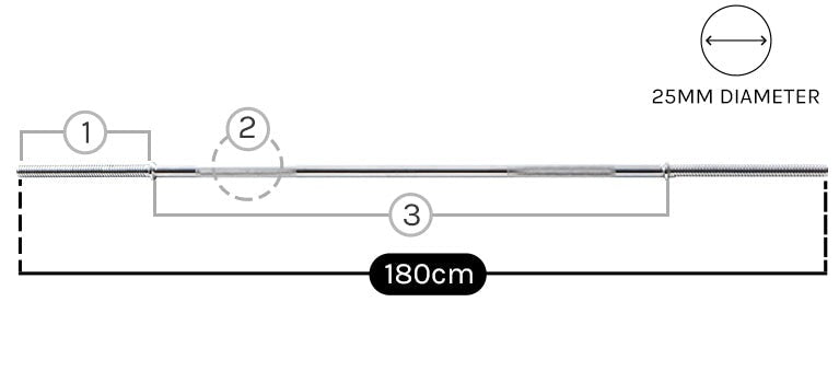 | Barbell | 180cm Steel, Chrome Plated, 26.5cm loadable sleeves |