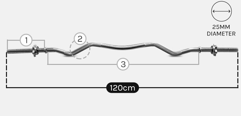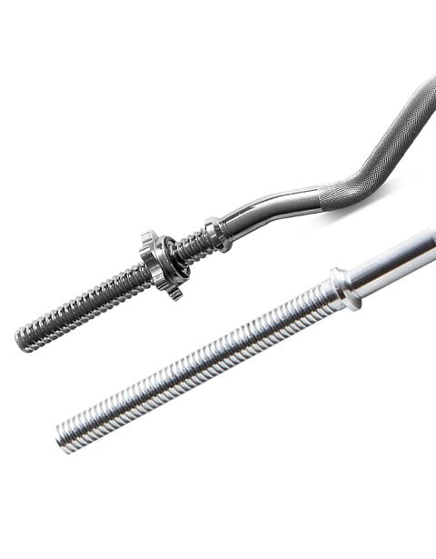 Chrome Plated and a steel core to last a lifetime. Knurl gripped and ergonomically designed to fit most shoulder widths during key workouts. Comes with 2 spiral collars per curl bar.