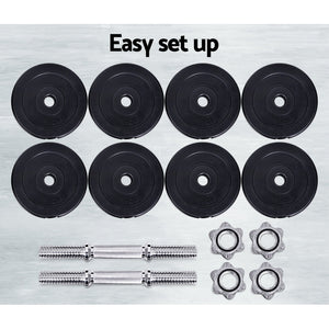 Time to get tough. If you are looking to boost those triceps, biceps and shoulders, our 25kg Dumbbell Set is the perfect deal for you. Whatever your game is, our dumbbell set lets you strengthen and tone those muscles your way. This commercial-grade set features a high-quality bar with non-slip handle that offers optimal gripping surface. Each weight plate weighs 2.5kg and is made of cast cement coated with smooth plastic, reducing clanging sounds and making them more floor-friendly. You can adjust the weight of the dumbbell by removing the weight plate and only using the dumbbell bar (weighing 2.5kg each) or adding more compatible weight plates. The star-shaped nuts ensure the weight plates stay securely in place for safe workouts. Best of all, the dumbbell comes in a set of two (two 12.5kg dumbbells for 25kg total) so that you can exercise both arms at the same time. Gym junkie or workout pro, you can get fit easily with our 25kg Dumbbell Set.