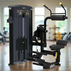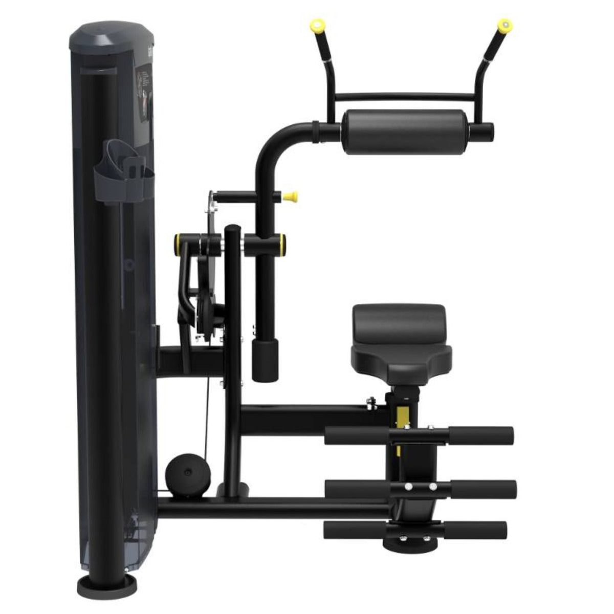 IT9534 is designed to provide back and abdominal training. Yellow circle pivot helps to assume the correct position during workout. Back extension/Abdominal provides pelvic stabilization from a comfortable backrest during exercise.