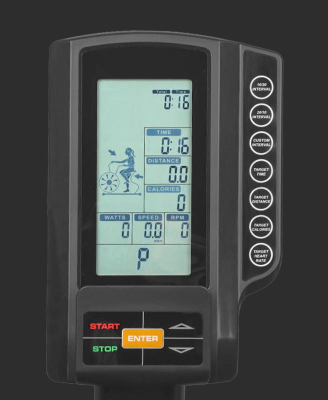Track your workout data and measure your progress on the easy-to-use LCD display. Stats shown include Time, Speed, Distance, Calories, RPM, Pulse and Watts