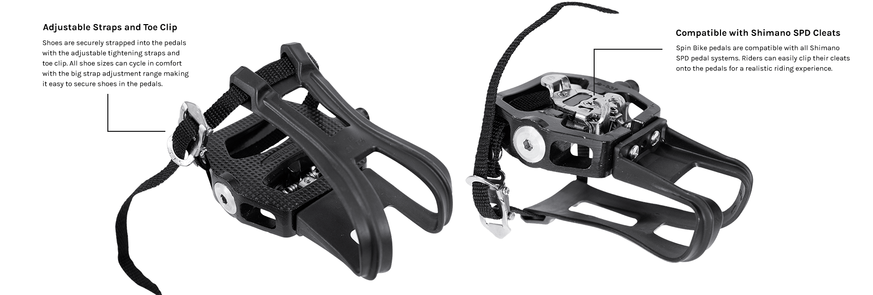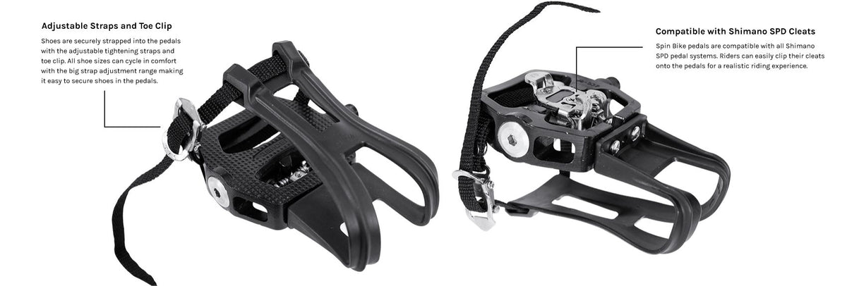 Crafted to enhance your indoor cycling experience, the SM-810 features dual-sided pedals that seamlessly attach to any spin bike equipped with a standard crank (9/16"). Constructed from durable aluminium, these pedals offer stability and support during intense cycling sessions, ensuring riders can push themselves to their limits with confidence.