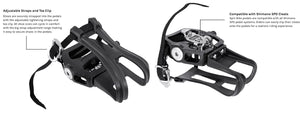 | Pedals | Dual Sided Aluminium pedals with toe clips and Shimano SPD cleats |