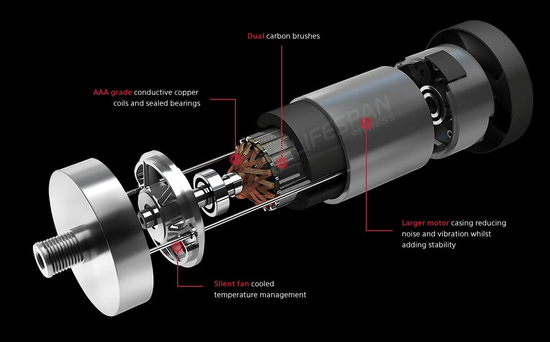 The EverDrive® H7AC Motor powers the Lifespan Fitness Tempest CR Treadmill, offering a consistent and smooth running experience. Designed for durability, this motor supports high performance and quiet operation, perfect for any fitness setting. Feel the difference in every stride, whether you're walking, jogging, or sprinting.