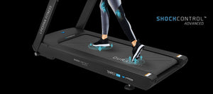 The treadmill is equipped with a DuraGrip® Ultra Running Belt and ShockControl™ Advanced Cushioning to prevent slipping and reduce joint impact, ensuring a safe workout experience.