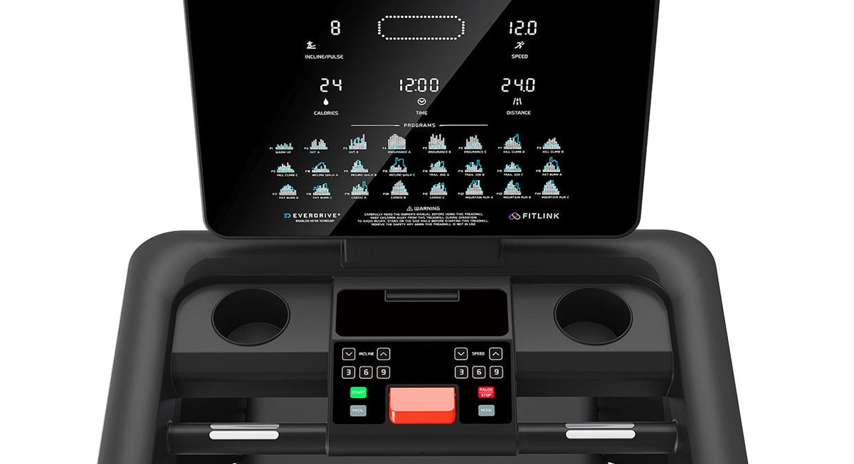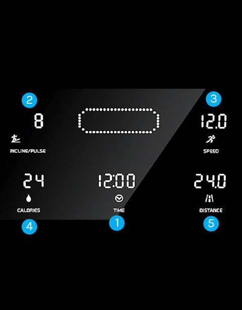 Stay in touch with your workout data with a simple, but easy to read backlit LCD display. Shows speed, time, distance, calories, incline level, pulse and a 400m running track.