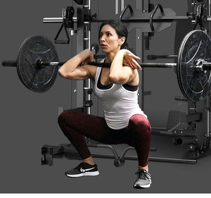 A Smith machine allows you to truly push yourself to the limit while feeling safe and secure, without the need for a spotter. The fitted guide rails keep the bar vertical and linear for smooth and even movements, with multiple hooking points.