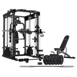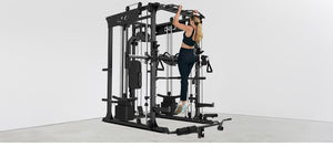 The GRK200 All-in-1 Home Gym Station boasts an extensive range of exercise possibilities, with a Smith and Cable machine, power rack, chin-up bar, barbell landmine, and much more.
