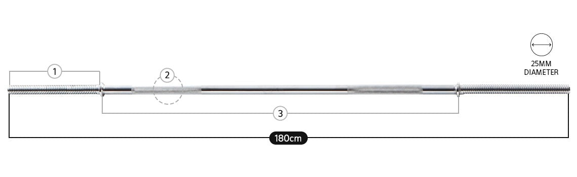 Chrome plating and a steel core to last a lifetime. Knurl gripping and comes with two spiral collars.