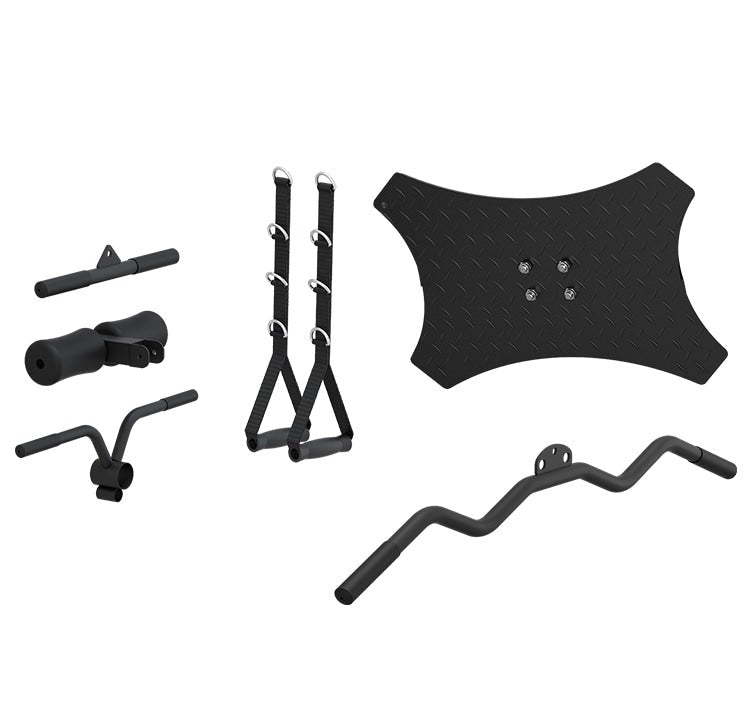 Alternate between compatible attachments and add variety to your workout. The GRK200 comes with multiple attachments included, such as Vertical Leg Press Plate, Pulldown Bar, Straight Bar, Landmine Handle and more.