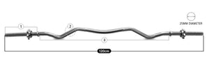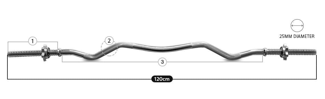 Chrome Plated and a steel core to last a lifetime. Knurl gripped and ergonomically designed to fit most shoulder widths during key workouts. Comes with 2 spiral collars per curl bar.