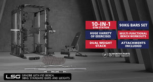 Here's everything included with this LSG GRK200 10-in-1 Home Gym Station, Power Rack, Smith Machine and Cable Crossover.