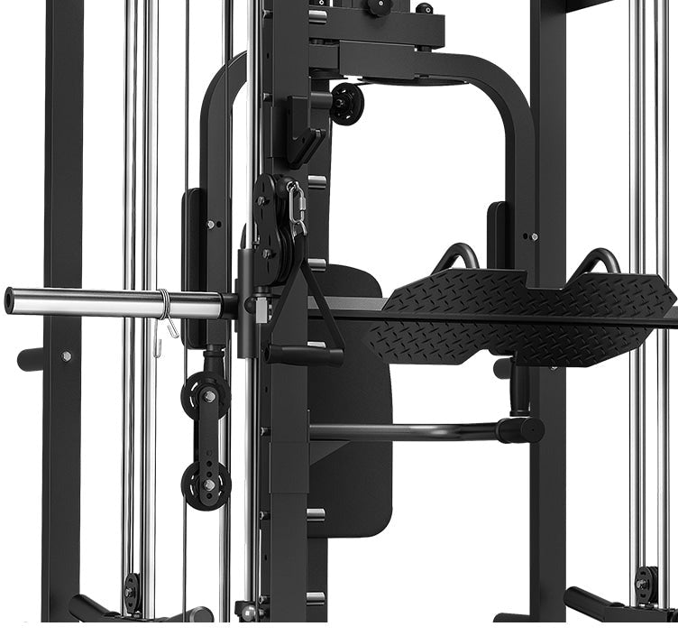 A Smith machine allows you to truly push yourself to the limit while feeling safe and secure, without the need for a spotter. The fitted guide rails keep the bar vertical and linear for smooth and even movements, with multiple hooking points.