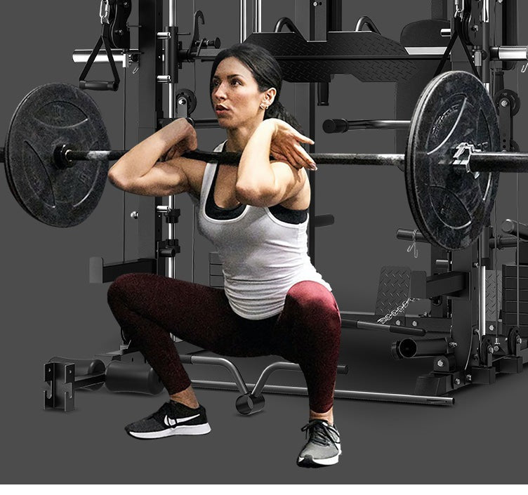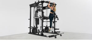 The GRK200 All-in-1 Home Gym Station boasts an extensive range of exercise possibilities, with a Smith and Cable machine, power rack, chin-up bar, barbell landmine, and much more.