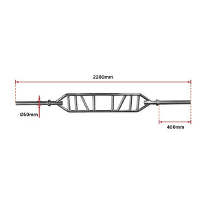 The overall size of this Chrome powder coated barbell is 2200mm, or roughly 86 inches.