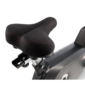 The Sole B94 Upright Bike features an adjustable gel seat and ergonomically designed cushioned pedals for superior ride comfort.