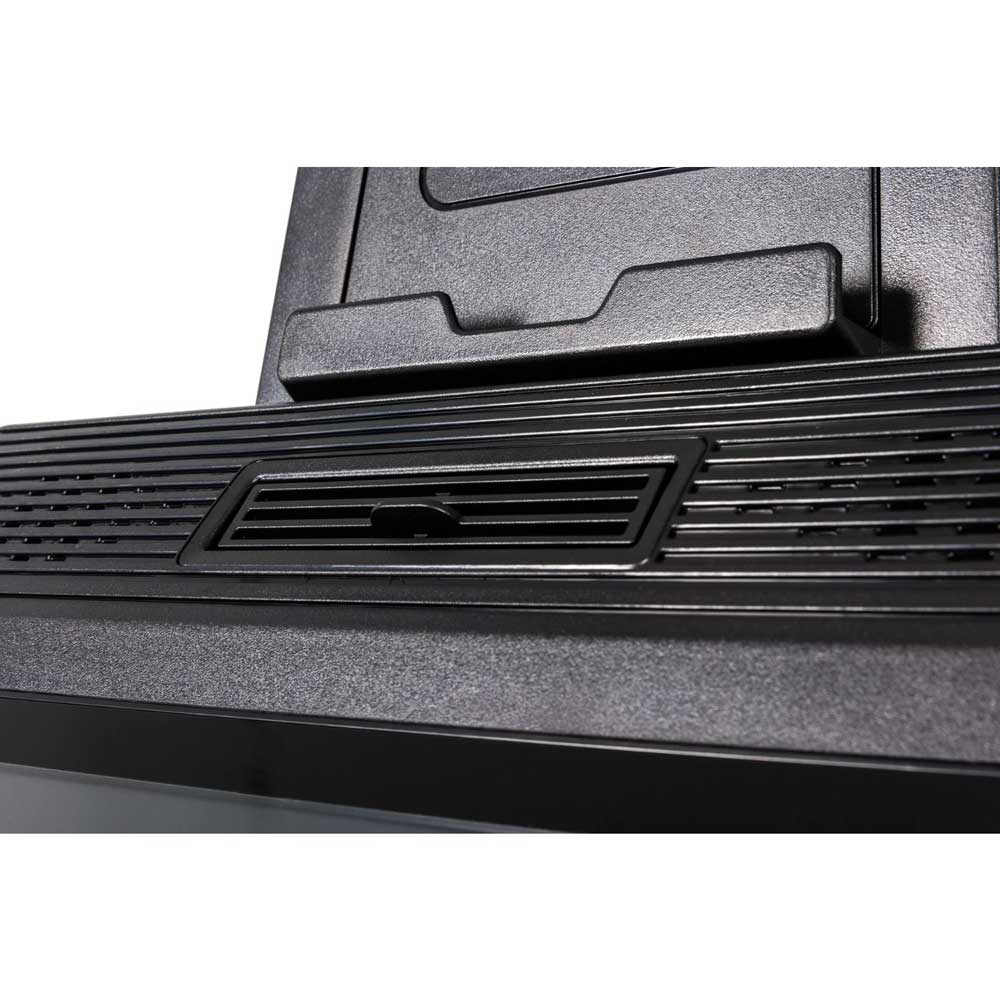 The power incline ramp is fully adjustable from 0 to 20 levels to effectively work different lower body muscle groups. For a total body workout, the custom molded hand grips include integrated buttons to adjust resistance and incline without breaking your stride.