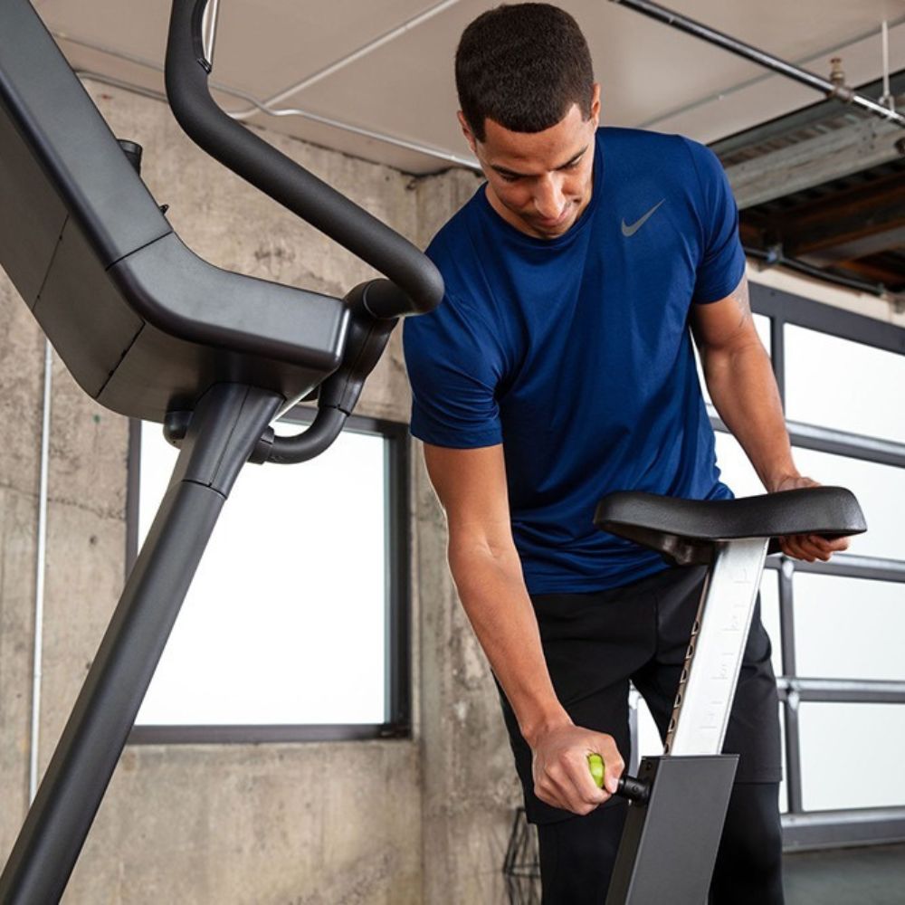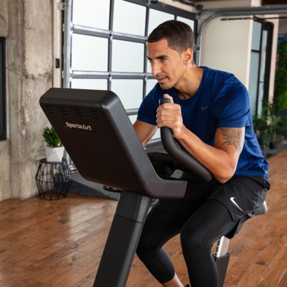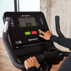 The SportsArt C573U features a low-profile shroud design for easy access and a vertically adjustable seat height, accommodating users of various sizes and mobility levels. Its ergonomic design ensures a comfortable and natural upright cycling position, promoting proper posture during workouts.