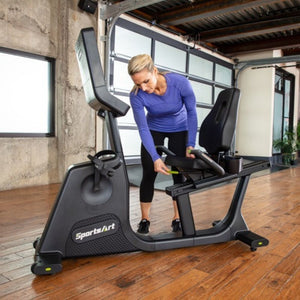 The SportsArt C574R features a wide, step-through frame, making it simple for users of all mobility levels to access.